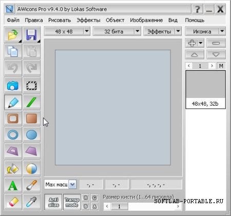 Инструмент для поиска, создания, редактирования, импортирования / экспортирования иконок, статических и анимированных курсоров, небольших изображений. Возможности AWicons: многоязычный интерфейс; полная поддержка иконок Windows XP; загрузка и сохранение изображений в следующих форматах: ico, cur, ani, png, gif, jpg, bmp; поддержка всех цветовых форматов (1-, 4-, 8-, 24-, 32-битные изображения); произвольные размеры (максимум 128x128); поиск объектов в заданной папке (с подкаталогами) по нескольким критериям (имя файла, размеры, цветность, тип) с отображением всех найденных изображений