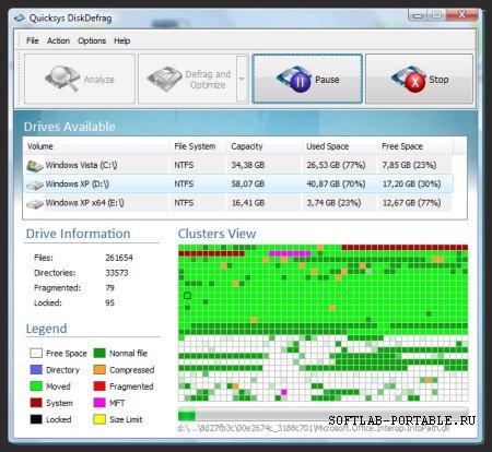 Компактный дефрагментатор файловой системы (поддерживаются NTFS, FAT16 и FAT32), использующий в своей работе набор интеллектуальных алгоримов QSICA, направленных не только на оптимизацию процесса дефрагментации файлов, но и на предотвращение их фрагментации в дальнейшем.