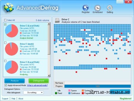 Профессиональная и мощная программа, призванная вылечить медлительность вашего компьютера и предотвратить возможное падение системы. Эта программа в своей работе применяет самые передовые технологии, что позволяет вам быстро проанализировать состояние дисков и убрать полностью и надежно всю найденную фрагментацию в системе, освободив массу рабочего дискового пространства и доведя до максимума производительность всего за несколько минут. Advanced Defrag определенно вернет вам здоровый и быстрый компьютер точно таким, когда он впервые появился в вашем доме!