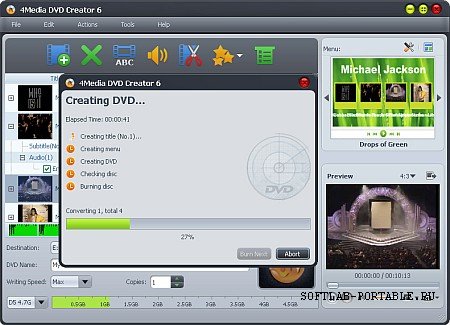 Одна из лучших программ для создания DVD фильмов из различных видео файлов. Возможность легко записать на DVD MP4, MKV в DVD, AVI, MPEG, WMV, MP4, МТС, M2TS и так далее до DVD, создать DVD папку или файл ISO образа. Это программное обеспечение позволяет записать DVD-диски с персональными меню DVD и полностью совместимо с большинством форматов дисков. Большой выбор DVD авторских функций позволяет создавать специальное меню DVD, обрезать видео размер кадра, настраивать видео эффекты, добавлять водяной знак. Высокая скорость записи и превосходное изображение и качество звука для записи DVD фильма.