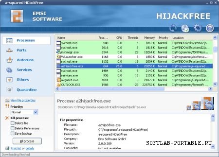 a-squared HiJackFree is a detailed system analysis tool which helps advanced users to detect and remove all types of HiJackers, Spyware, Adware, Trojans and Worms. Manage all types of Autoruns on your system. Control all Explorer and Browser plugins (BHOs, Toolbars, etc.) Manage all running Processes and their associated modules. Control all Services, even those Windows doesn't display. View open ports and the associated listening processes. View all DNS entries in the hosts file. Manage installed Layered Service Providers (LSPs). Analyze the system configuration with using our live online analysis.