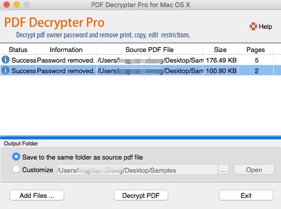 Simply load the file within the application and it will be instantly processed. After the decryption, the app will display a message in the Result column updating the process status. PDF Decrypter Pro features drag and drop options in order to make the whole decryption procedure faster and more efficient. Also, you can rapidly navigate to the source file or folder with a simple right-click